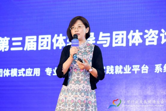 河北科技师范学院教授童秀英作了“新时代团体心理人才服务+培养模式的构建”主题报告。她强调,社会心理服务体系建设已正式纳入国家的顶层设计,日益凸显新形势下社会心理服务体系建设的重要价值。在这样的构架下,一支庞大的服务队伍必不可少。团体工作中大量生动、深刻的体验有助于保障心理服务“入脑、入心、入行”的效果,并且通过一对多的带领形式服务于更多群众,因此团体势必成为社会心理服务体系中不可或缺的主力军。